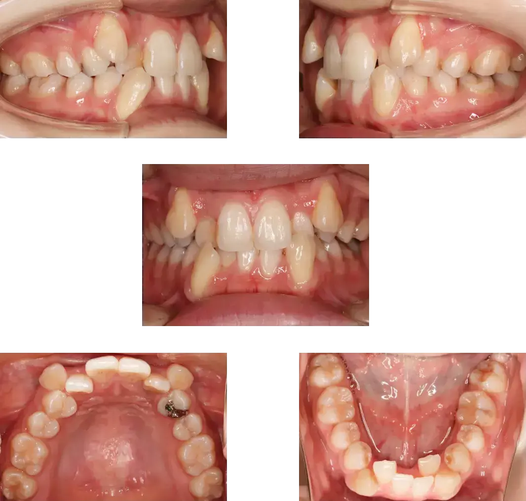 | 主訴 | 全体的な歯のガタつき、口元が出ている、歯のまん中がズレている。 |